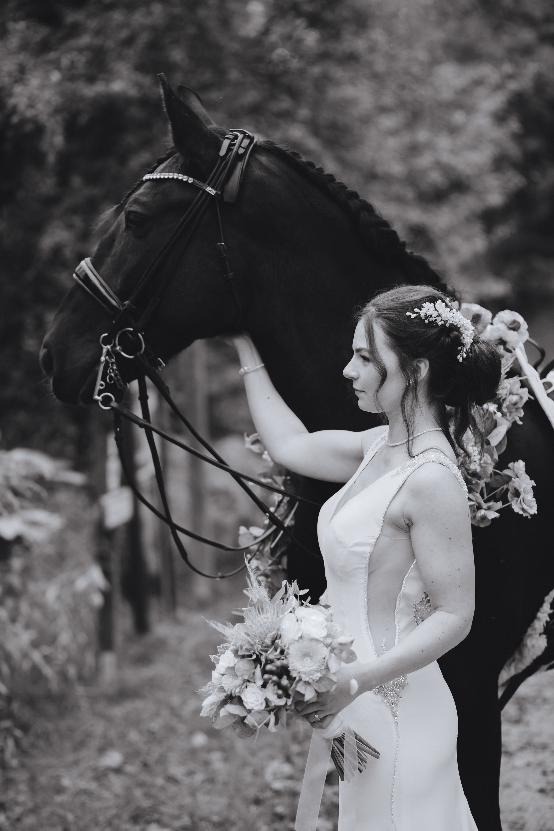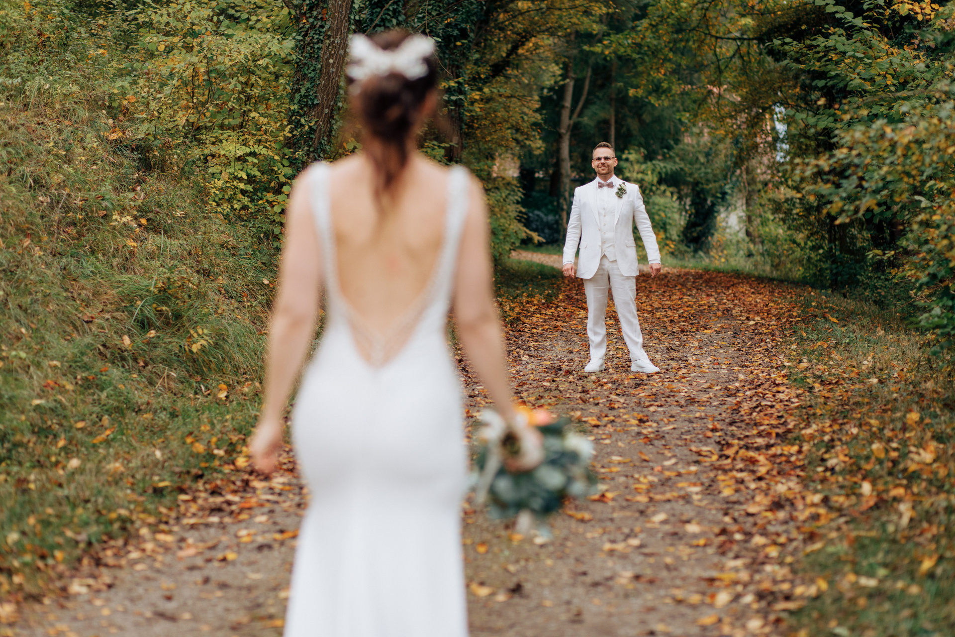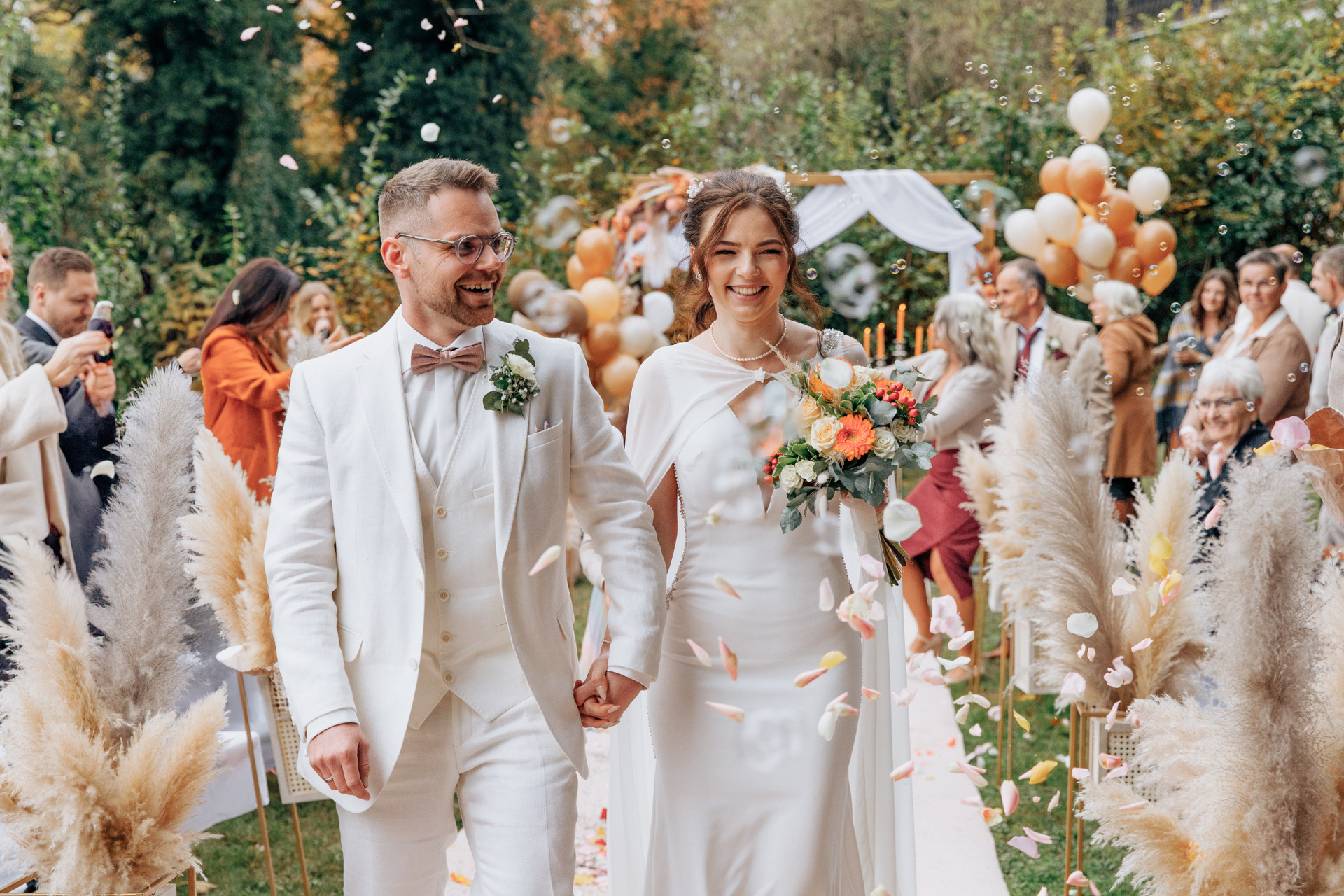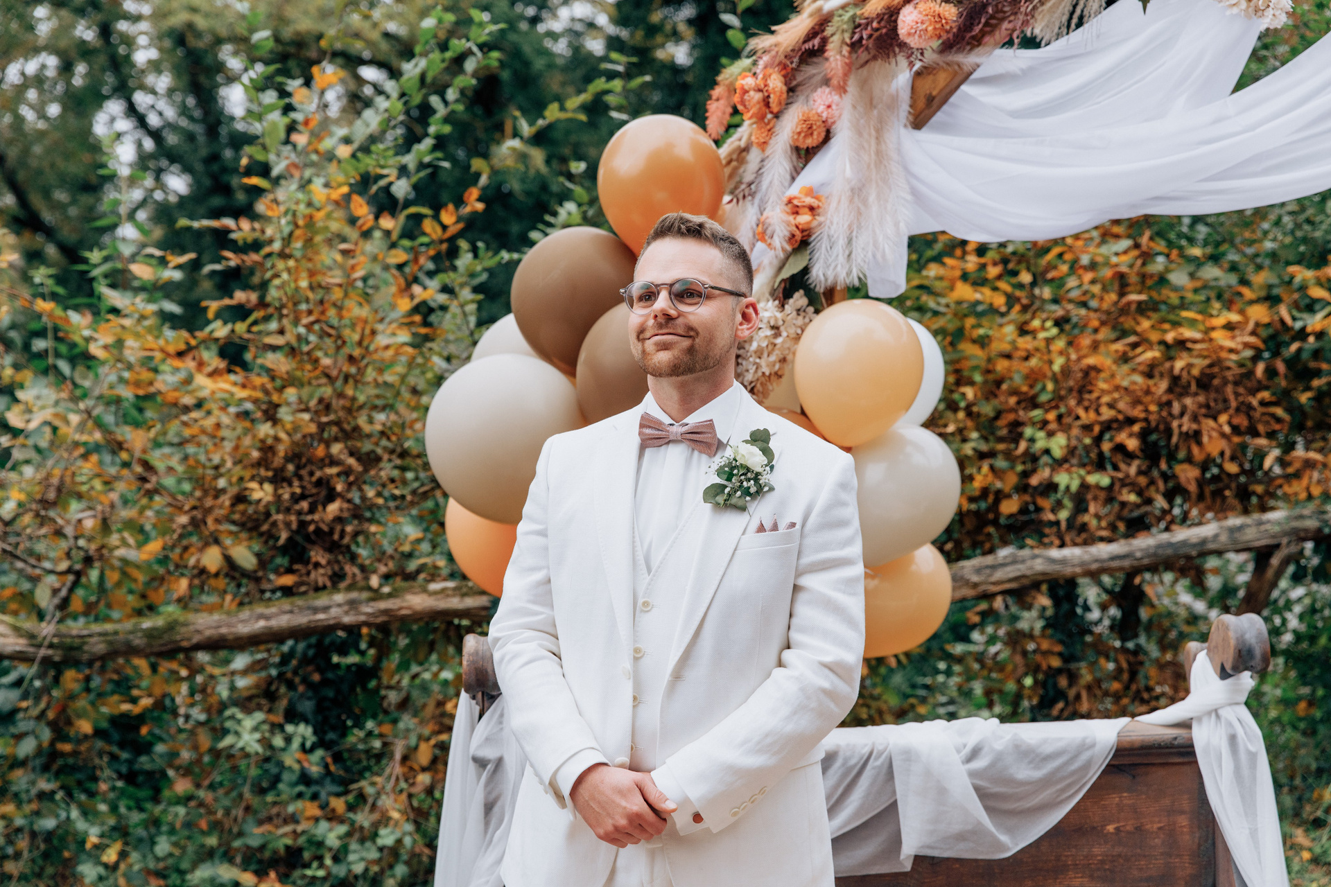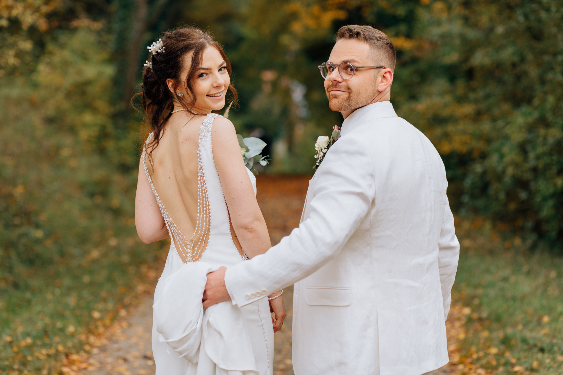 Es war eine kleine familiäre Hochzeit an einem warmen Oktobertag, umgeben von der bunten Herbstlandschaft mit Blick auf Kleinwallstadt. Ein besonderes Highlight war der Auftritt der Braut auf einem Pferd, gefolgt von einem einzigartigen Fotoshooting mit dem Tier. Alles war wunderschön dekoriert, die Atmosphäre war entspannt und fröhlich – und das Brautpaar strahlte vor Glück!