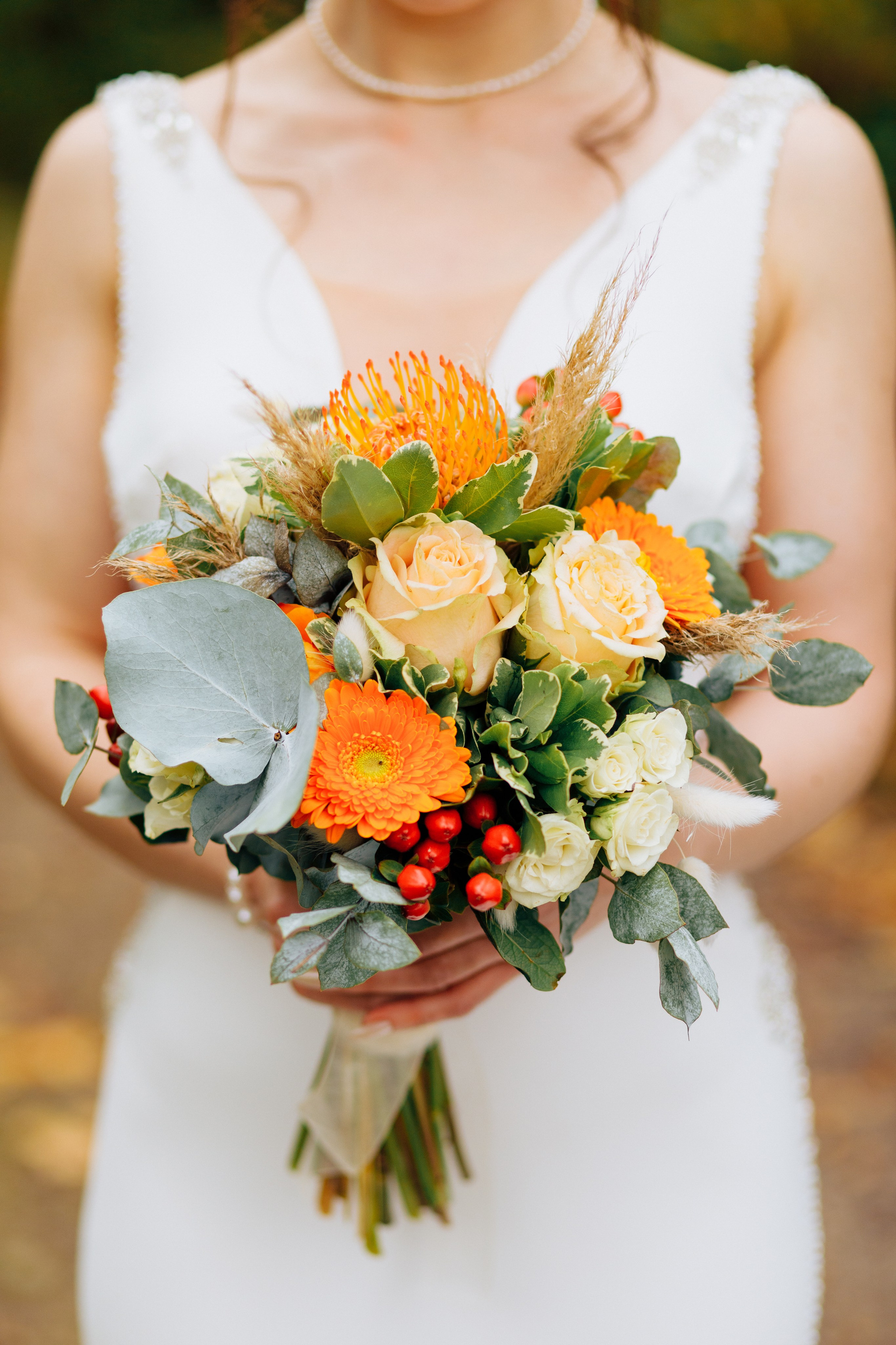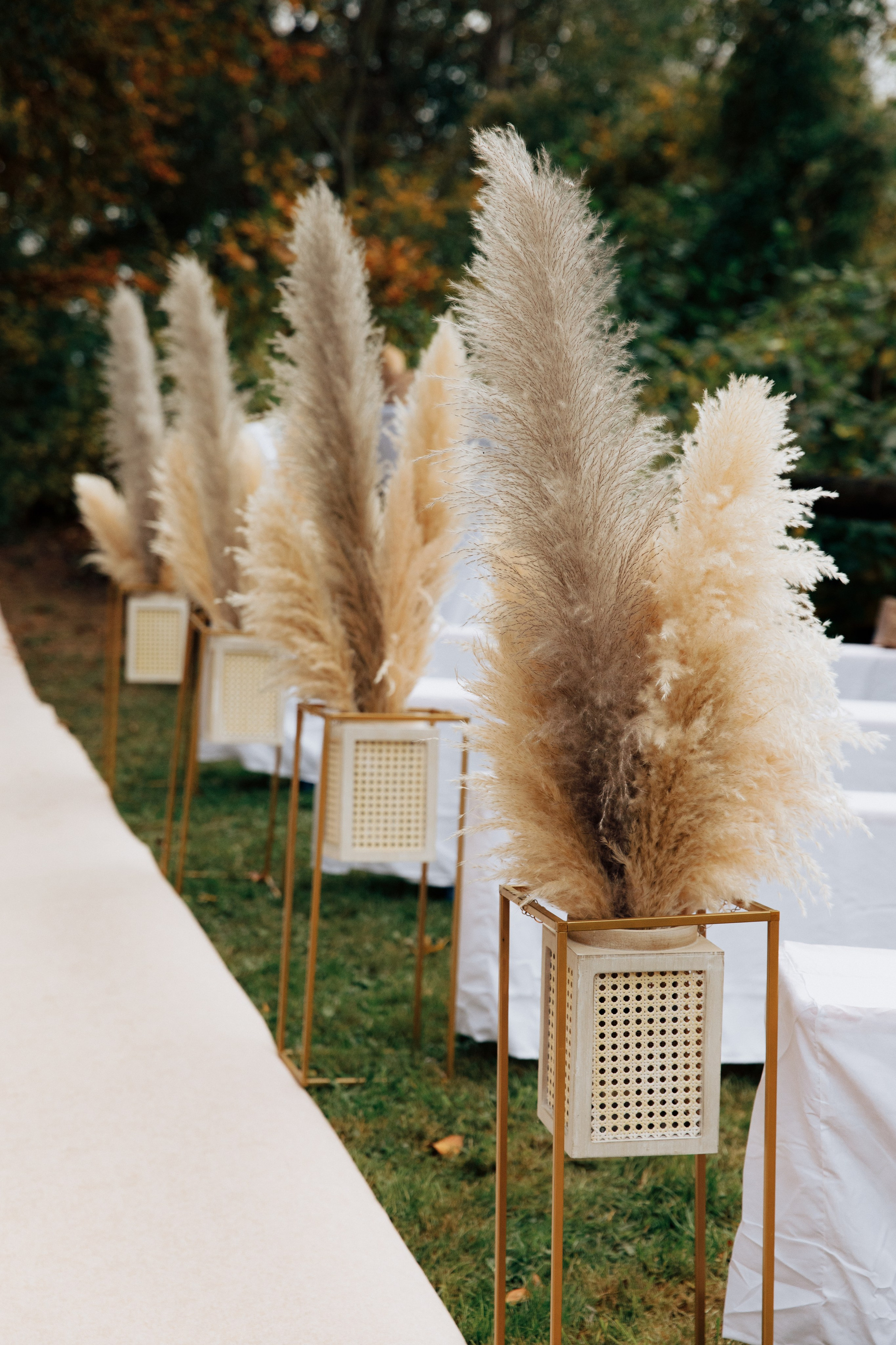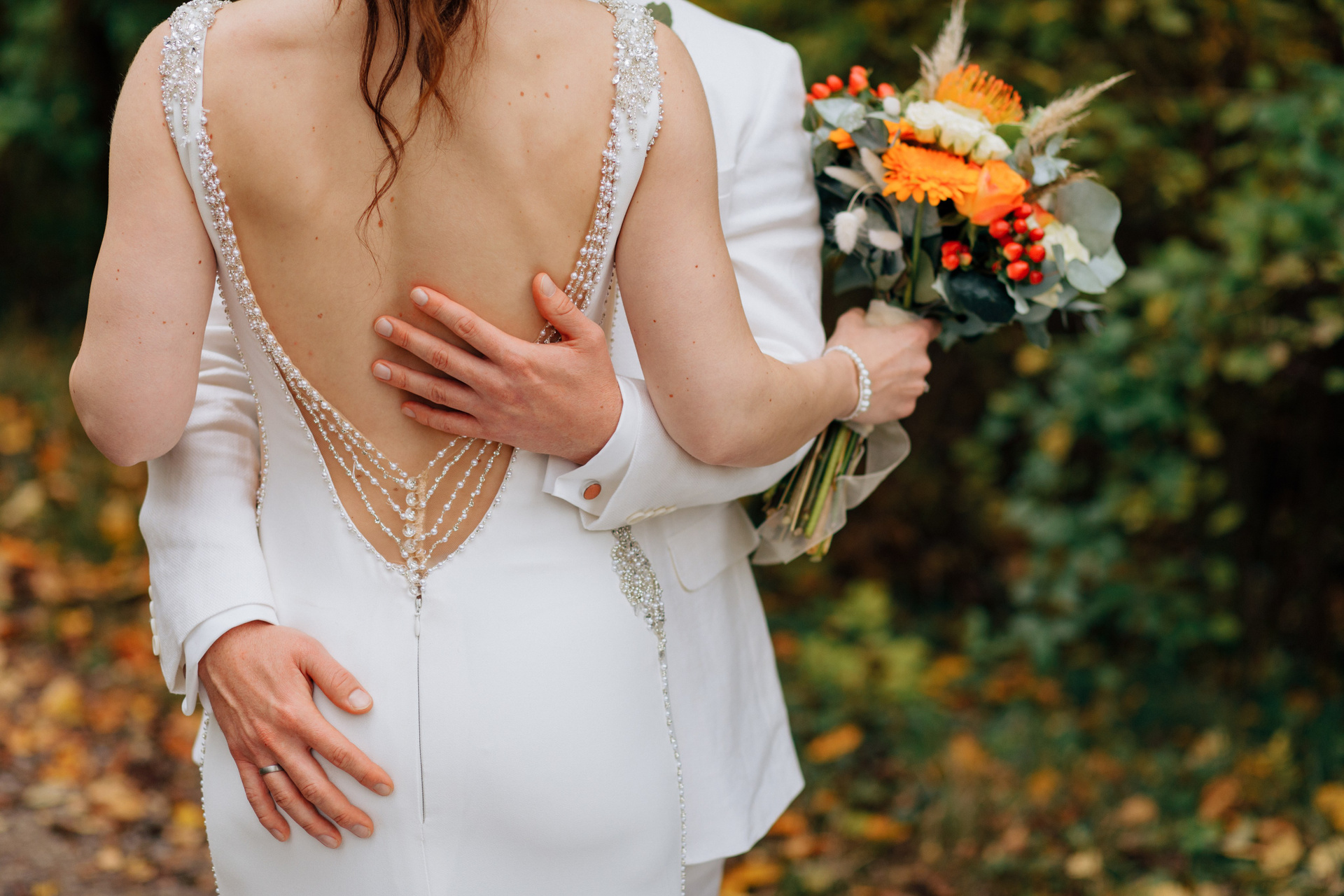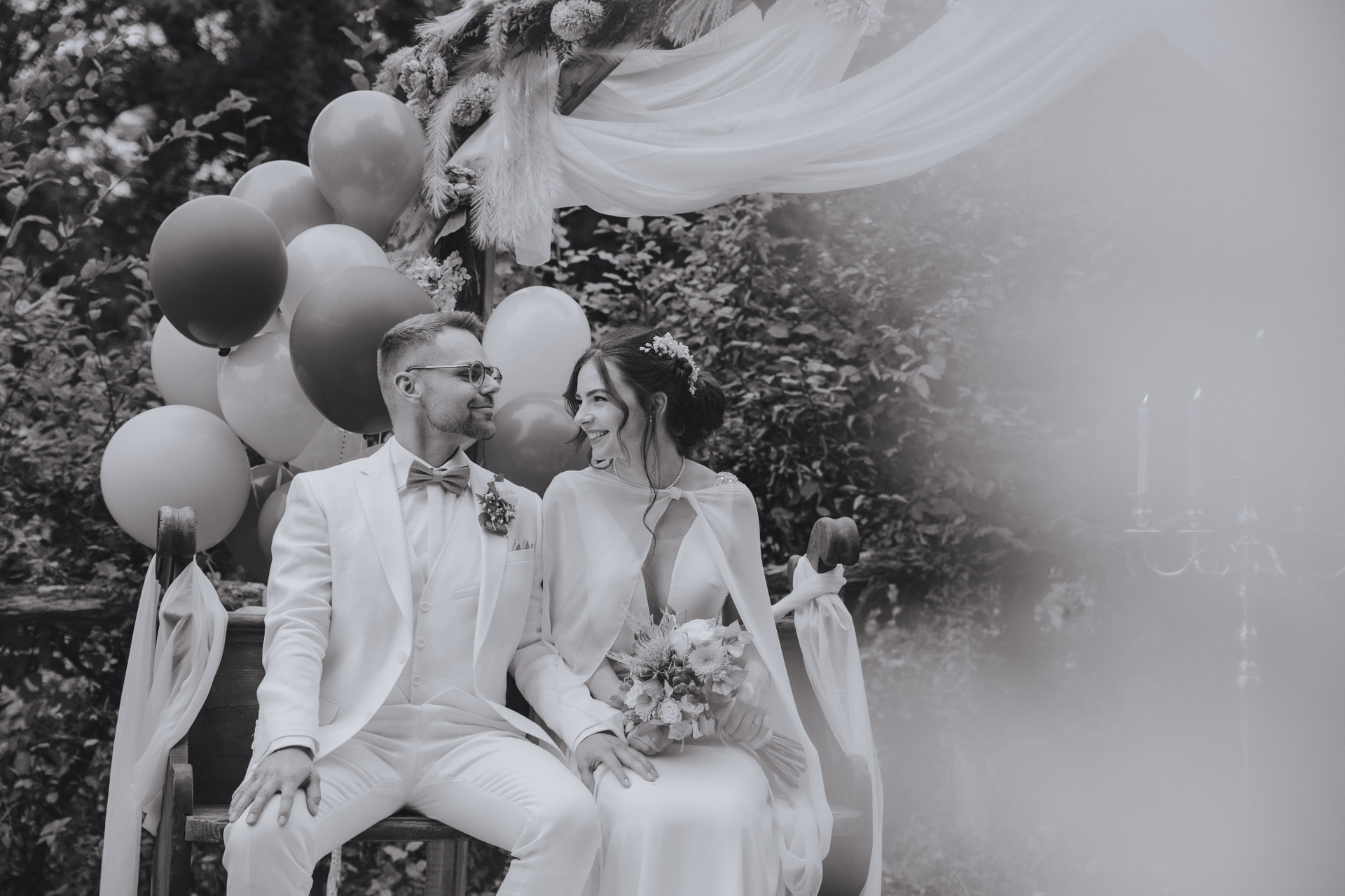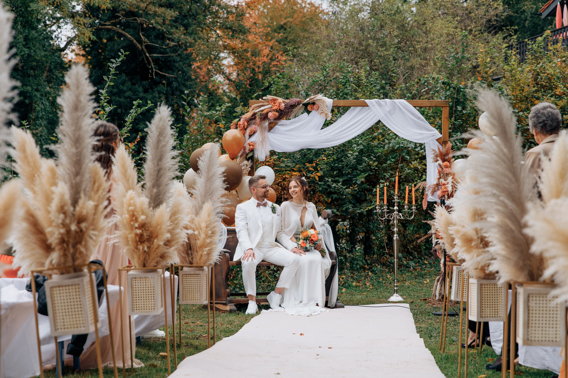 Es war eine kleine familiäre Hochzeit an einem warmen Oktobertag, umgeben von der bunten Herbstlandschaft mit Blick auf Kleinwallstadt. Ein besonderes Highlight war der Auftritt der Braut auf einem Pferd, gefolgt von einem einzigartigen Fotoshooting mit dem Tier. Alles war wunderschön dekoriert, die Atmosphäre war entspannt und fröhlich – und das Brautpaar strahlte vor Glück!